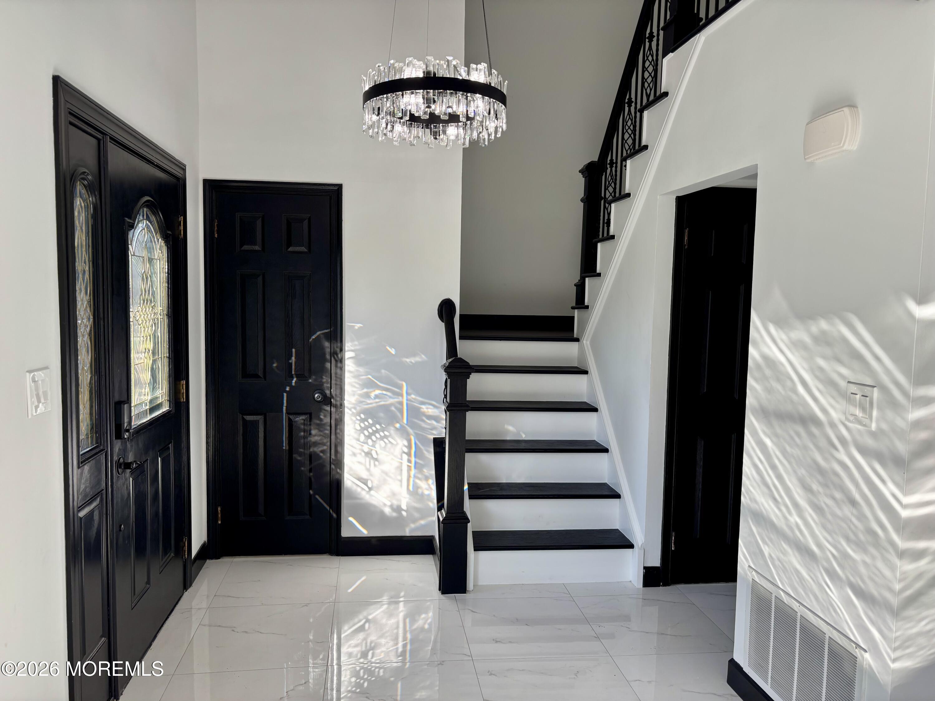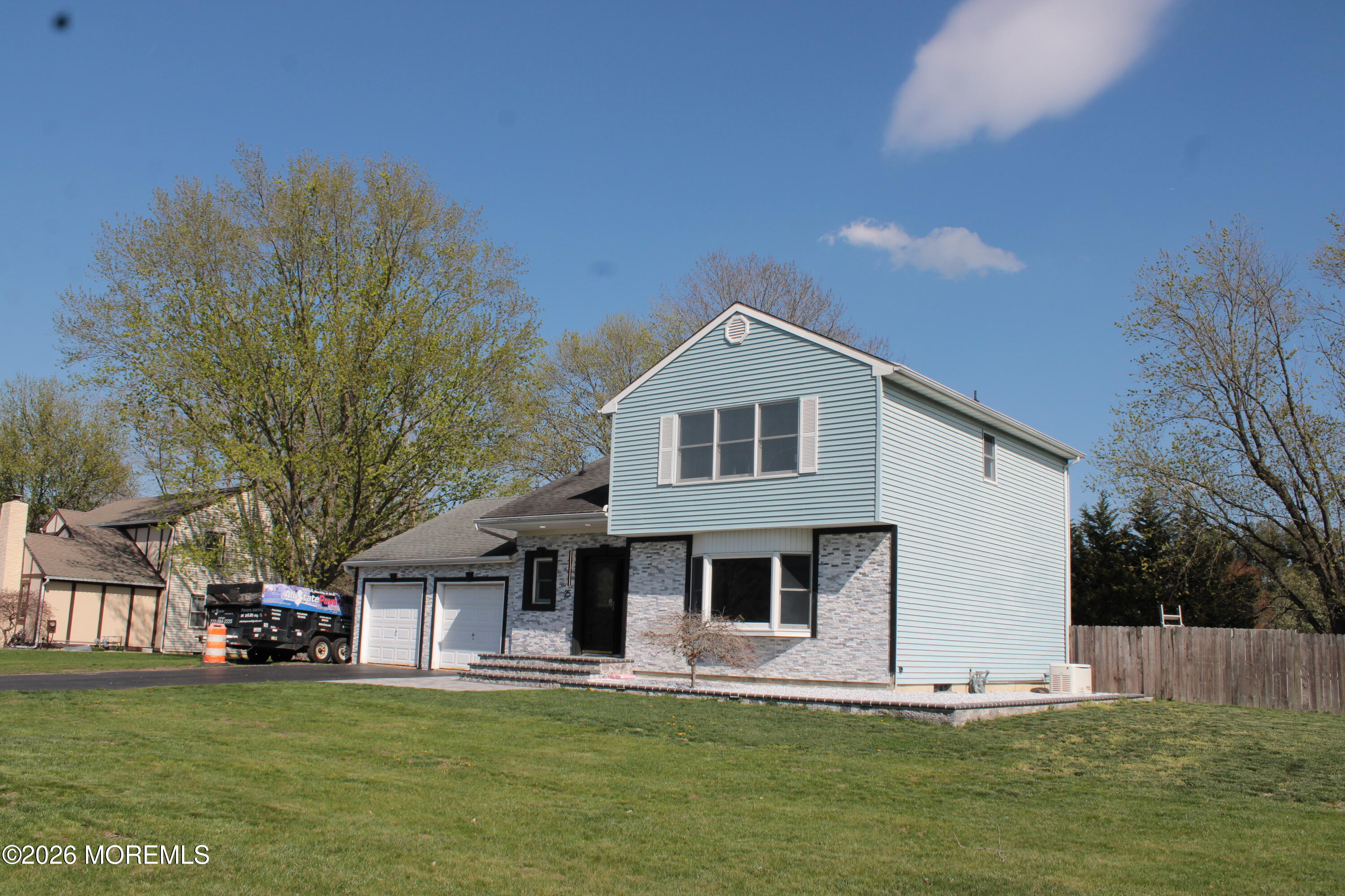 Welcome to this beautifully renovated home in the heart of Manalapan. From the moment you enter, you'll notice the gleaming Venato floors that flow throughout most of the home, complemented by fresh paint, all-new light fixtures, a brand-new staircase with modern railing, and striking curb appeal with a new brick front and front steps. This bright and spacious residence offers 4 generously sized bedrooms with new engineered flooring and 3.5 fully renovated bathrooms. The inviting living and dining areas provide the perfect setting for both everyday living and entertaining. The newer kitchen is thoughtfully designed with granite countertops, a breakfast bar, chimney hood, and abundant cabinetry. A cozy wood-burning fireplace with built-in storage adds warmth and charm, making it a true centerpiece of the home. A standout feature is the expansive first-floor family room, complete with a walk-in closet and full bath--ideal as a private guest suite or easily convertible into a fifth bedroom. Additional highlights include an unfinished basement with endless potential, a two-car garage, and a whole-house generator for added peace of mind. Situated on a desirable corner lot, the property features a large fenced backyard with an above-ground pool--perfect for relaxing or entertaining outdoors. Conveniently located near NYC bus transportation and shopping, this home combines comfort, style, and convenience. Property is being sold "as is." Certificate of Continued Occupancy (ZCCO) already in place.
